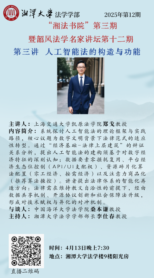 直播预告|郑戈:人工智能法的构造与功能