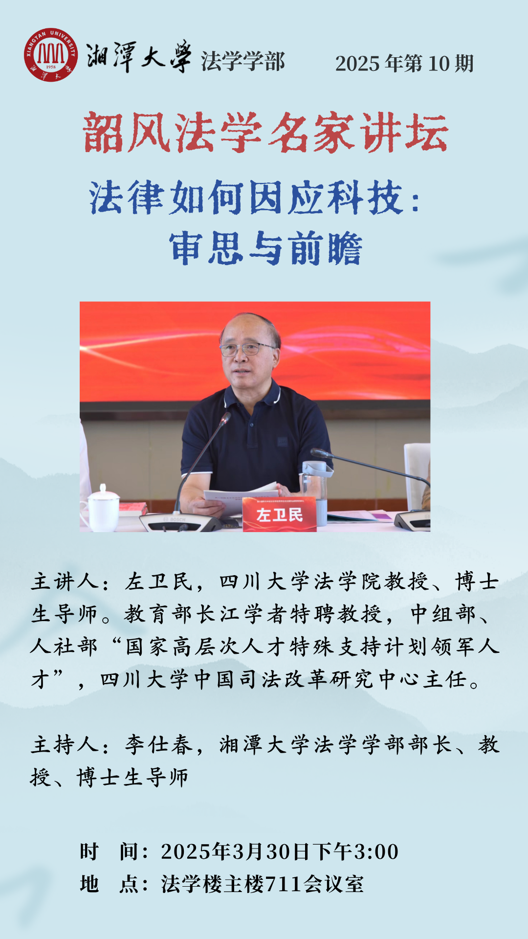 【韶风我院名家讲坛】左卫民:法律如何因应科技:审思与前瞻