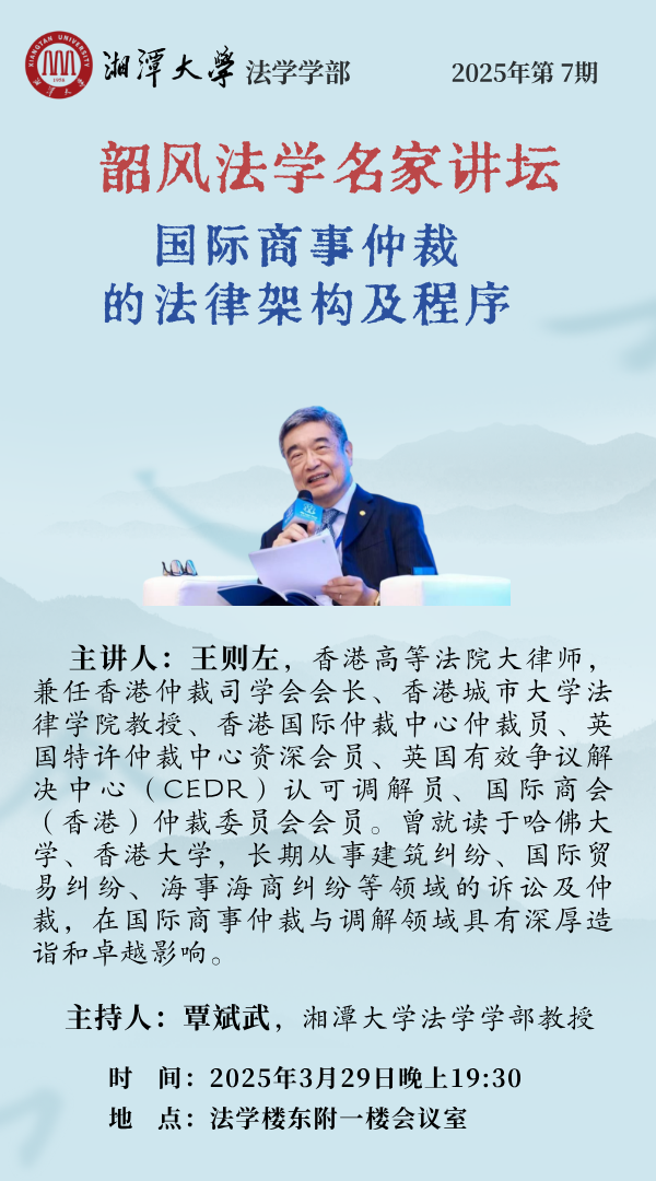 【韶风我院名家讲坛】王则左:国际商事仲裁的法律架构及程序