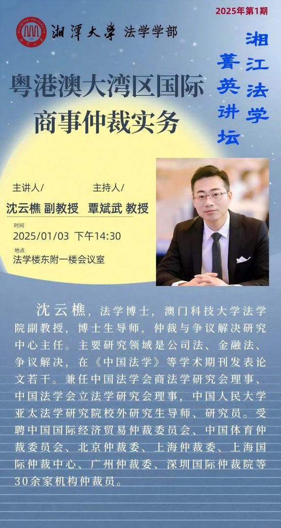 【湘江法学菁英讲坛】沈云樵:粤港澳大湾区国际商事仲裁实务
