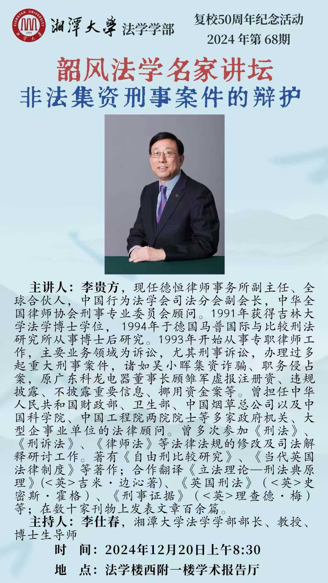 【韶风我院名家讲坛】李贵方:非法集资刑事案件的辩护