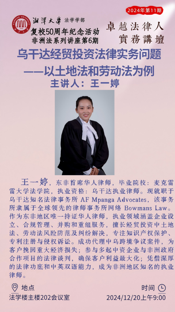 【非洲法系列讲座】王一婷:乌干达经贸投资法律实务问题