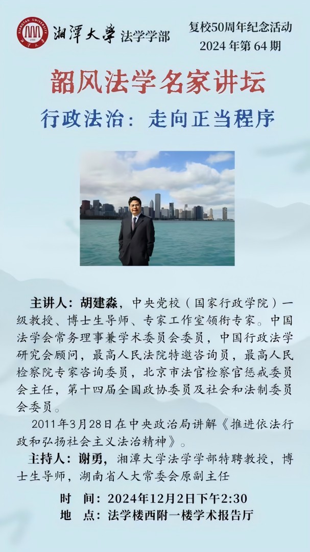 【韶风我院名家讲坛】胡建淼:行政法治:走向正当程序
