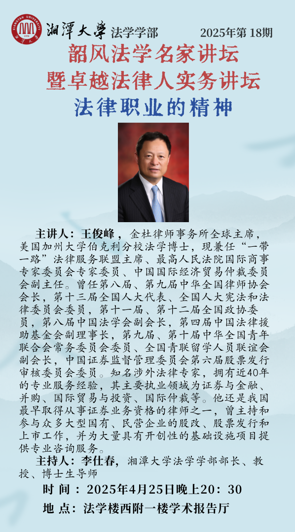 【韶风我院名家讲坛】第18期暨卓越法律人实务讲坛王俊峰:法律职业的精神