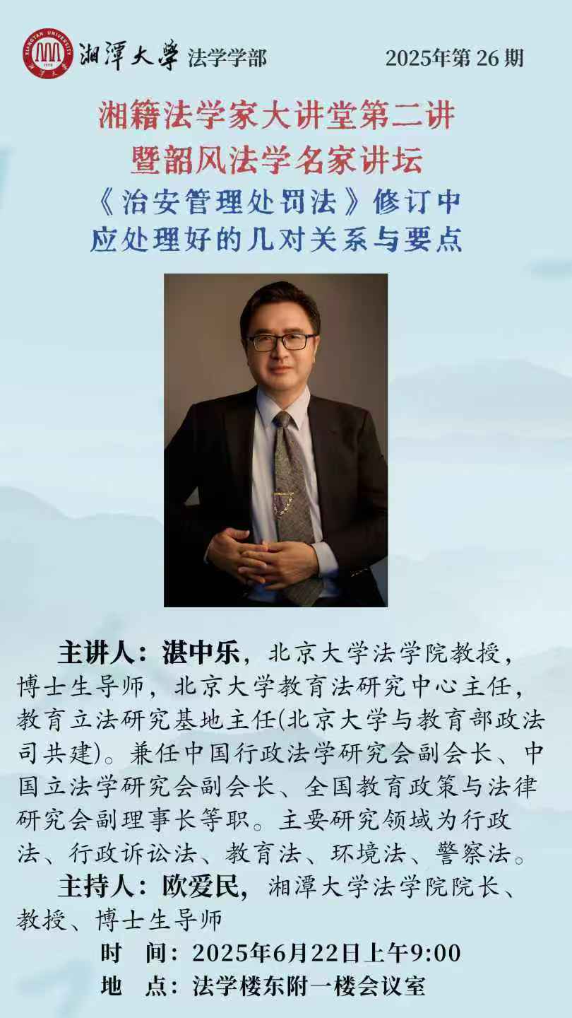 【韶风我院名家讲坛】2025年第26期 湛中乐:《治安管理处罚法》修订中应处理好的几对关系与要点