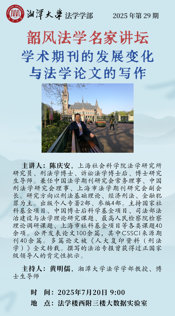 【韶风我院名家讲坛】2025年第29期 陈庆安:学术期刊的发展变化与法学论文的写作