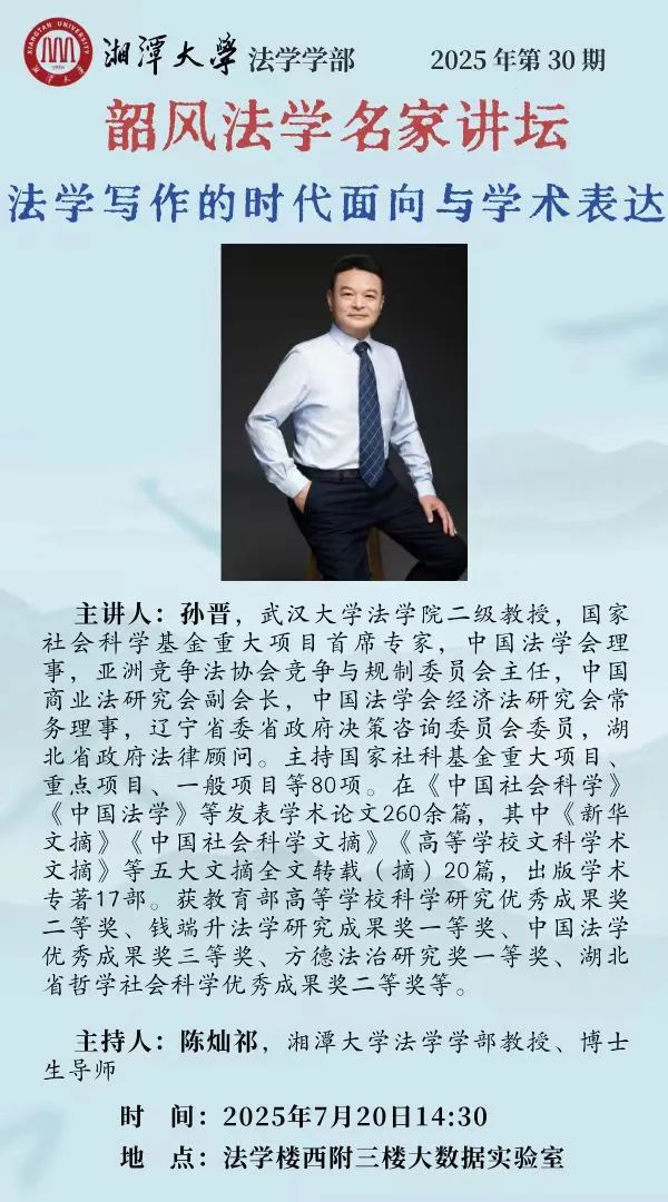 【韶风我院名家讲坛】2025年第30期 孙晋:法学写作的时代面向与学术表达