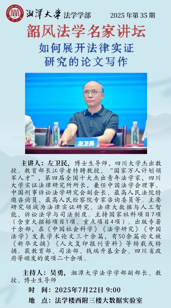 【韶风我院名家讲坛】2025年第35期 左卫民:如何展开法律实证研究的论文写作