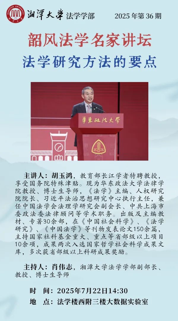 【韶风我院名家讲坛】2025年第36期 胡玉鸿:法学研究方法的要点