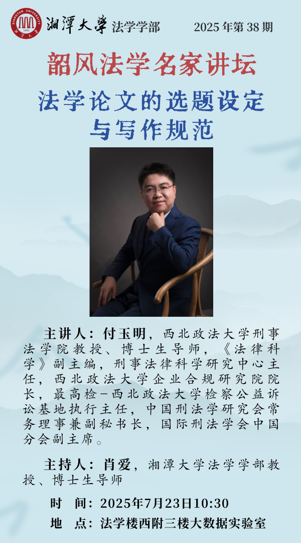 【韶风我院名家讲坛】2025年第38期 付玉明:法学论文的选题设定与写作规范