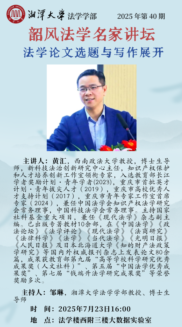 【韶风我院名家讲坛】2025年第40期 黄汇:法学论文选题与写作展开