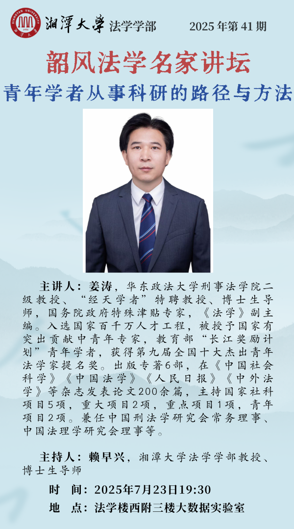 【韶风我院名家讲坛】2025年第41期 姜涛:青年学者从事科研的路径与方法