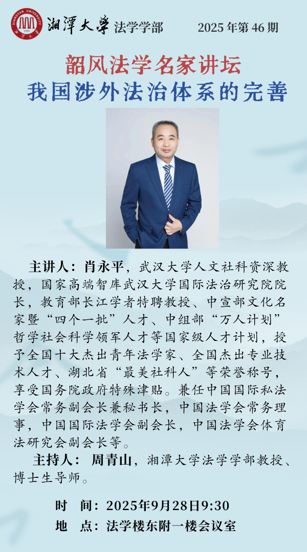 【韶风我院名家讲坛】2025年第46期 肖永平:我国涉外法治体系的完善