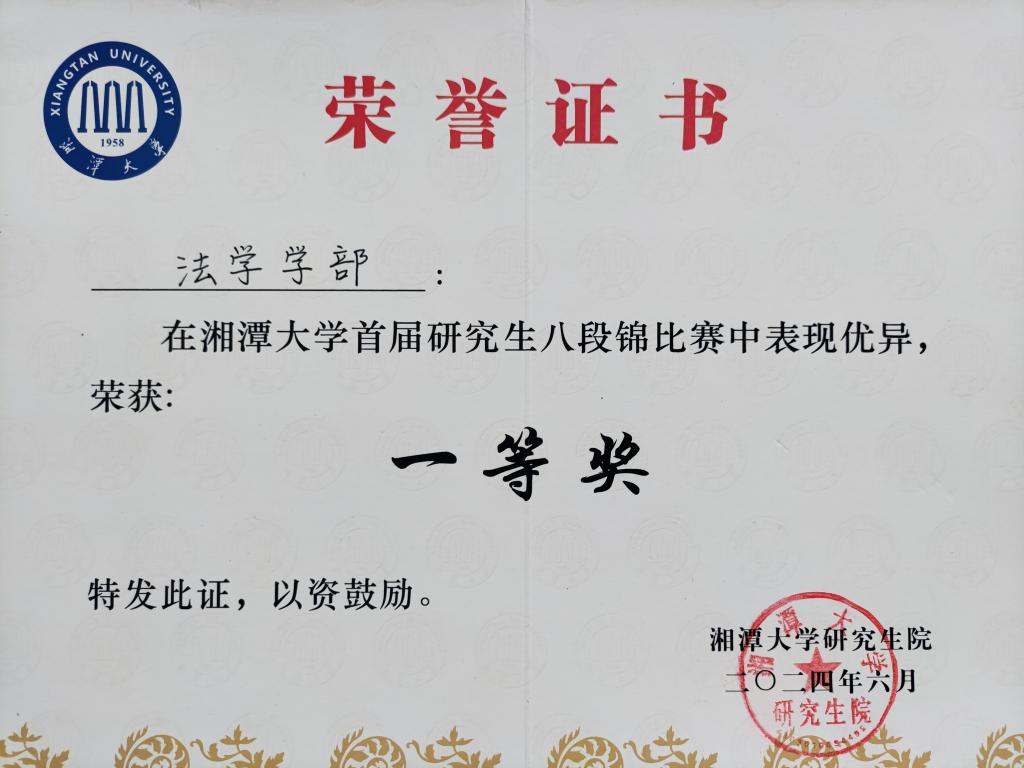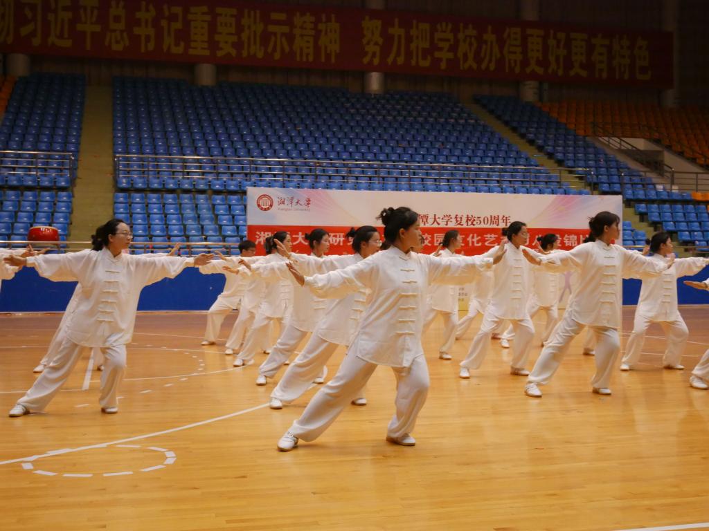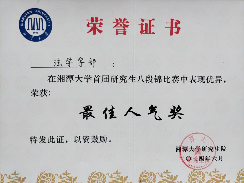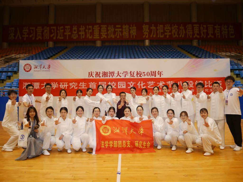 经过统计,我院学部最终以9.45分位列第一,夺得冠军,取得湘潭大学研究生首届校园文化艺术节八段锦比赛一等奖和最佳人气奖的优异成绩!