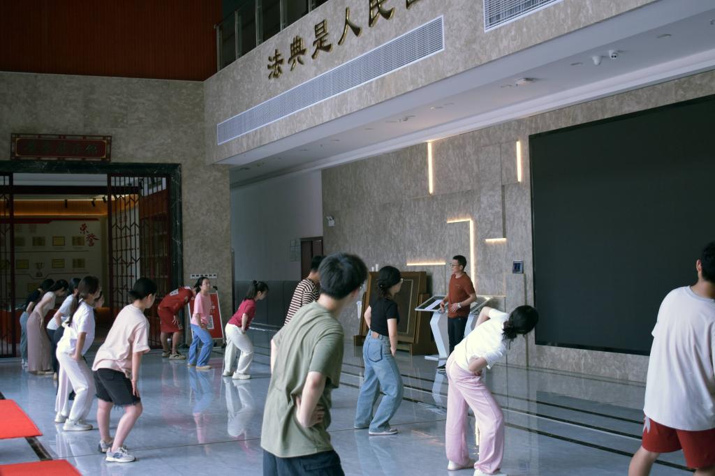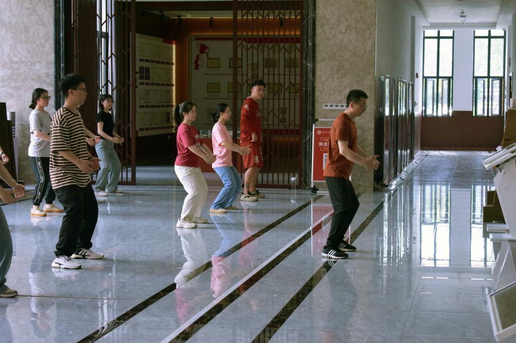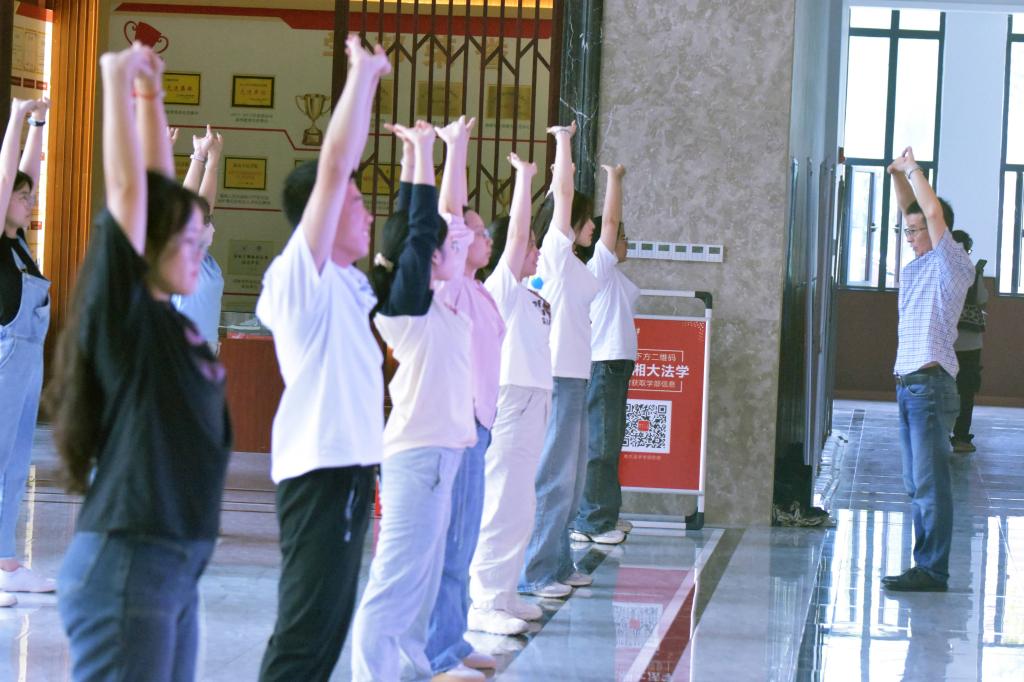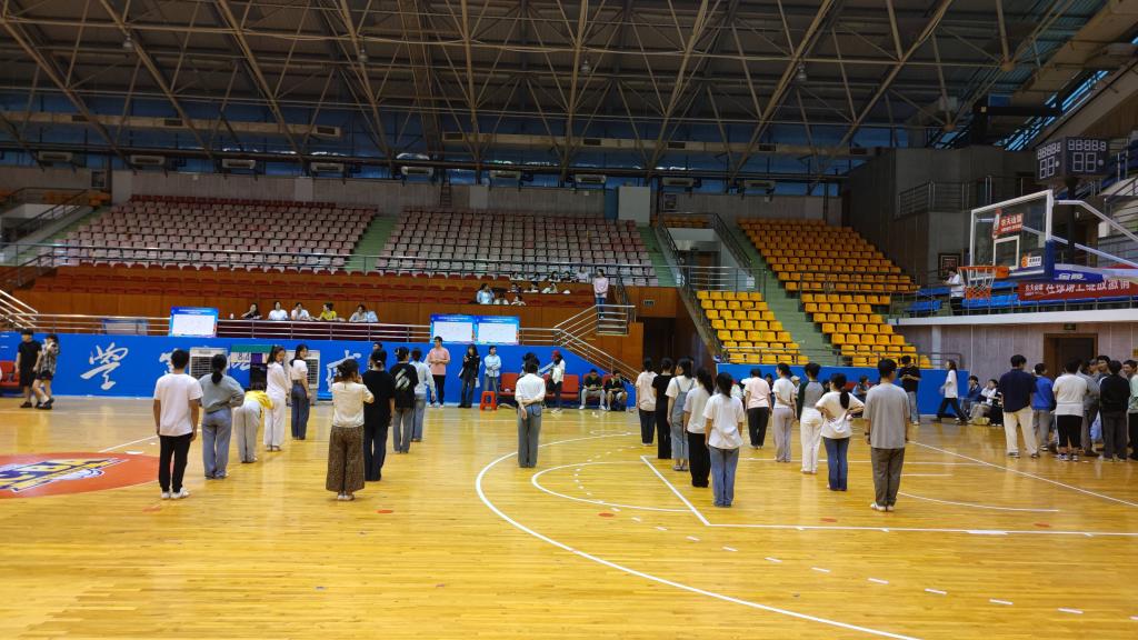 6月1日,正式比赛前一天,我院学部同学们从下午3点集合练习至晚上8点,王雄老师组织同学们进行比赛队列调整,再次强调了八段锦的动作细节,确保每一位同学的动作规范。经过数次练习,我院学部候场进入比赛场地彩排,一个多月的训练已见成效,同学们在彩排后信心满满。