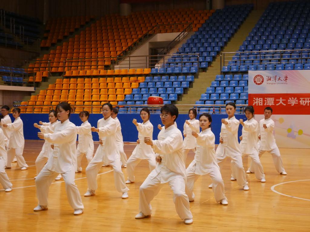 6月2日晚,湘潭大学研究生首届校园文化艺术节八段锦比赛在新体育馆二楼主馆落下帷幕。经过19支队伍的激烈角逐,我院学部代表队最终以9.45分的绝对优势夺得比赛第一,获得冠军!