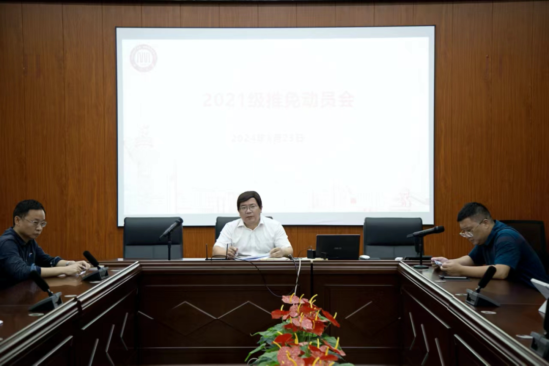 6月25日下午,我院学部组织2021级拟申请推荐免试攻读研究生的同学召开2024年推免动员会,我院学部部长李仕春、副部长连光阳、副书记黎益君以及学工老师和教务老师参加了本次会议。