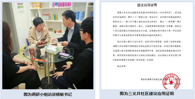 在随后的访谈中,杨敏书记表示湘潭大学时间银行调研团队的研究成果对于社区进一步优化积分制规则,完善爱心银行管理机制具有重要作用,将采纳相关建议和方案、拟签订合作协议、预设立时间银行实践基地,以助力进一步发挥三义井社区爱心银行机制的典型示范和推广作用。