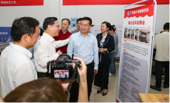 湘潭大学校长廖永安、我院学部领导班子及招生与就业指导处负责人等到招聘会现场,与用人单位进行了深入交流,广泛听取了行业人才需求、校企合作深化、法治人才培养优化等方面的宝贵意见和建议。