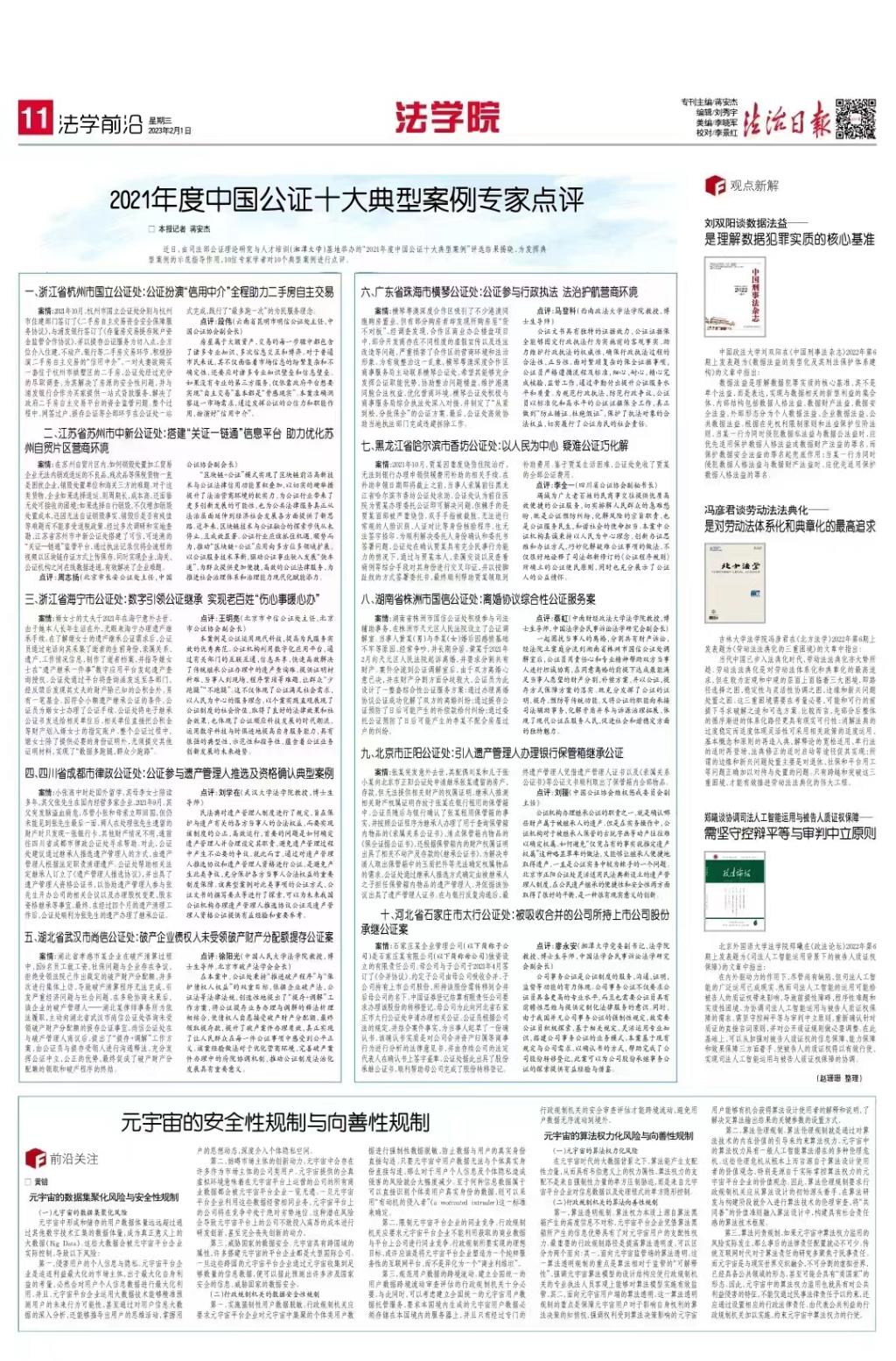 近日,由司法部公证理论研究与人才培训(湘潭大学)基地举办的“2021年度中国公证十大典型案例”评选结果揭晓。为发挥典型案例的示范指导作用,10位专家学者对10个典型案例进行点评。