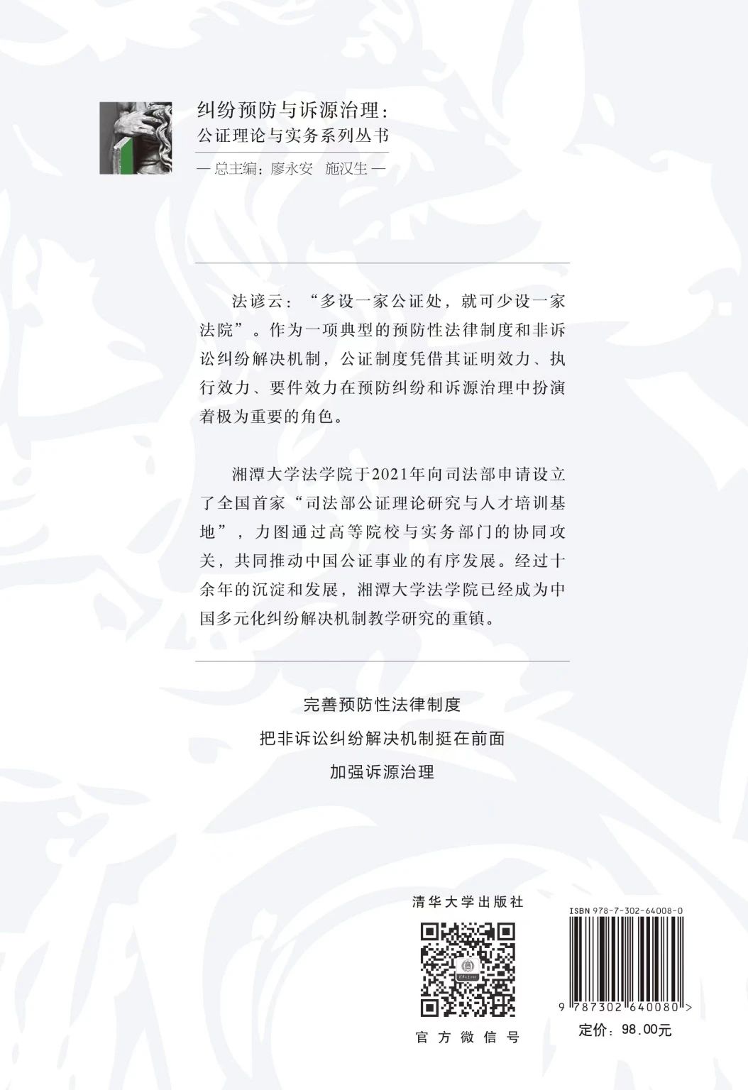本书聚焦中国公证现代化转型与发展过程中的前沿问题,汇集全国公证理论与实务专家的共同智慧,深入探讨公证体制改革与制度创新的中国方案。全书共分四编:第一编“公证体制改革的理论检视”分别从合作制公证机构性质、事业体制公证机构机制创新、公证模式与公证制度定位等视角对公证体制改革过程中的理论问题进行检视与反思。第二编“公证制度规范的优化革新”着力探讨公证执业区域、公证书效力、公证核实权等具体公证制度的运行困境与优化对策。第三编“公证业务创新的实践探索”重点关注物业管理公证、遗嘱公证、信托公证、意定监护协议公证等公证业务,积极总结公证实践探索的有益经验,并加强理论指引。第四编“在线公证模式的发展趋势”对在线公证模式、网络赋强公证制度运行中的痛点与难点问题进行剖析,在提出解决进路的基础上,指明在线公证模式的未来发展与完善方向。二、序言