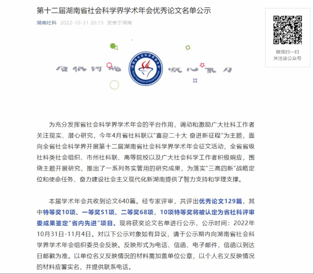 链接:第十二届湖南省社会科学界学术年会优秀论文名单公示