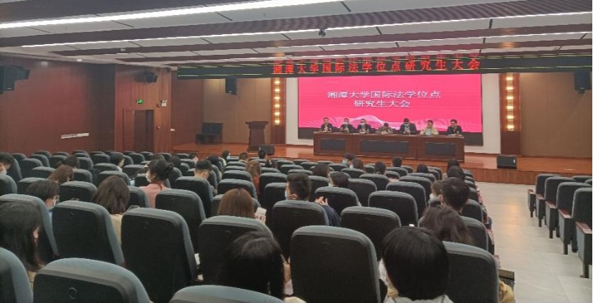 2021年10月27日晚,湘潭大学国际法学位点研究生大会在法学楼学术报告厅举行,国际法学位点七位老师及全体研究生参加大会。会议围绕“锻造研究生学术基本功,强化研究生全过程培养”主题展开,学位点七位研究生导师分别就问题意识培养、写作能力提升、团队协作强化、职业规划前景等议题发表讲话。