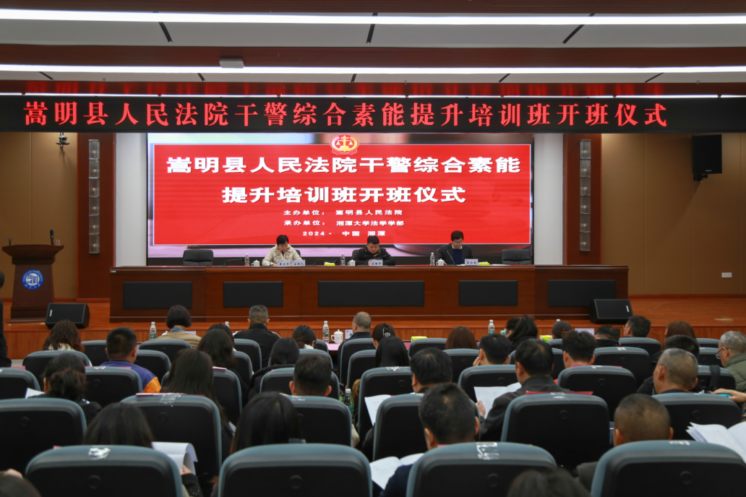 3月18日上午,云南省昆明市嵩明县法院干警综合素能提升培训班在湘潭大学法学楼学术报告厅开班。嵩明县委政法委常务副书记汤国平、嵩明县委政法委副书记张才、嵩明县人民法院党组成员、副院长赵晓荣等,我院学部部长李仕春、副部长易立峰出席开班仪式。