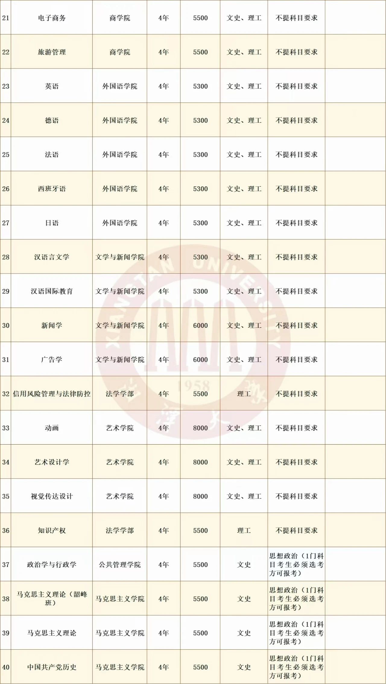 第十四条高考综合改革省份的考生必须满足yl23455永利官网的招生专业选科要求,非改革省份的考生必须满足yl23455永利官网的招生专业文理科要求。学校2024年招生专业的专业名称、所在院系、学制、学费标准、高考综合改革省市的选科要求、非改革省份的文理科要求、中外合作办学等相关要求等详见附件(湘潭大学2024年普通本科招生专业一览表);具体在各省的招生专业及相关类别,待yl23455永利官网分省分专业计划确定后,以各省招生考试机构公布的为准。