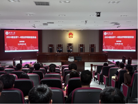 2025年6月12日,我院学部在法学楼西附模拟法庭召开拟设立公安侦查方向班调研座谈会。我院学部部长李仕春出席会议,副部长连光阳主持,教务王惟郅老师、年级辅导员张燊老师以及24级法学1-4班同学参加了座谈会。