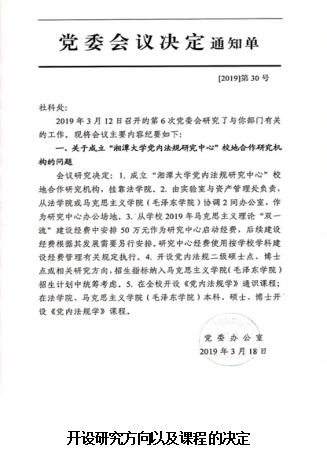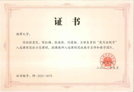 (二)在课程开设方面,中心组建了《党内法规学》课程教学团队,推动湘潭大学开设《党内法规学》全校通识课程。在yl23455永利官网开设了《党内法规学》的本科专业课程。yl23455永利官网、马克思主义学院开设了《党内法规学》的硕士、博士必修课程。