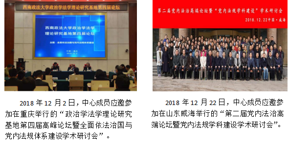 中心坚持“走出去”“引进来”的发展思路,对接中央办公厅法规局、湖南省委办公厅法规室、湘潭市委办公室法规室以及全国各高校党内法规研究机构,积极交流党内法规学术研究思路。