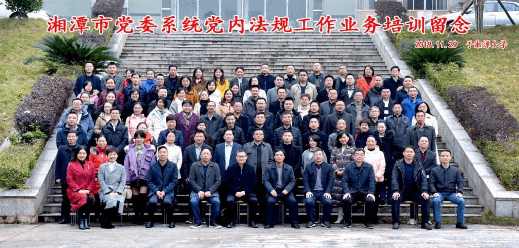 2019年11月29日,中共湘潭市党委系统党内法规业务培训会在湘潭大学举行,集中学习了《中国共产党党内法规制定条例》《中国共产党党内法规和规范性文件备案审查规定》《中国共产党党内法规执行责任制规定(试行)》等党内法规知识,取得了良好的效果。