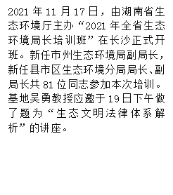公益诉讼检察工作的有序开展离不开党委、人大、政协、政府等各界的大力支持和配合,形成公益保护的合力。为此,基地的研究工作,并不局限于与检察机关之间的交流与合作,还积极与其他业务部门,尤其是行政机关展开常态化的业务培训与指导工作。目前,基地成员已为湖南省生态环境厅、自然资源厅、市公安局、市场监督管理局等开展多次专题培训和业务指导工作。