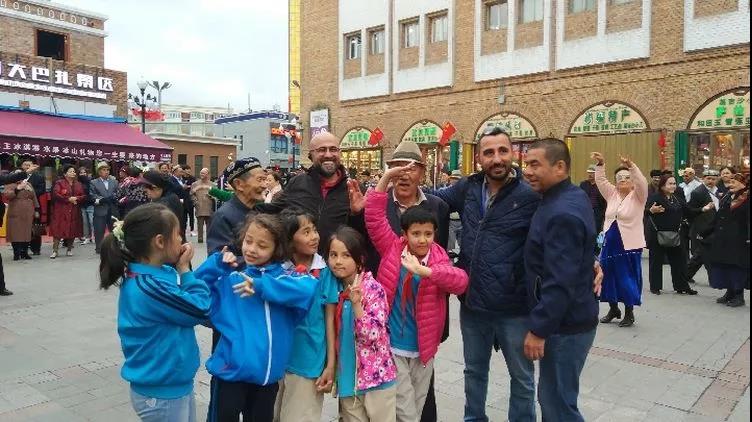 在新疆国际大巴扎景区,赛义德被跳着麦西来甫的人群所吸引:“这里到处能见到人们载歌载舞,大家脸上都洋溢着喜悦,这非常棒!”