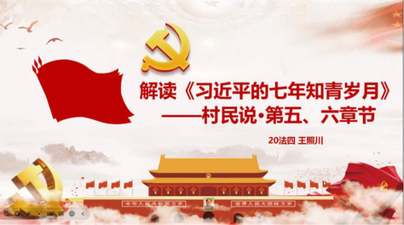 紧接着支部举行了《习近平的七年知青岁月》读书分享,支部新党员王照川同志以及胡远帆、胡蓓两名发展对象进行领学。此次分享活动以书中“村民说”部分为解读重点,三位汇报人分别从对梁玉明、石春阳、王宪平、吴晖、张卫庞等人的采访出发,对习近平同志在知青生活中的入党经历、工作经历等内容进行讲述,通过学习带领我们了解、学习了青年习近平矢志不渝的信念和始终扎根人民的情怀。