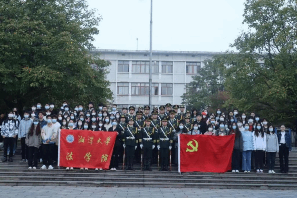 生在红旗下,长在春风里,目光所至皆为华夏。五星红旗,一面流淌着革命烈士鲜血的红旗,一面为中华人民,中华民族,为中华人民共和国屹立在世界之巅的红旗。清晨六点,熹微晨光中,湘潭大学国旗护卫队开始为每周一的升旗仪式做准备。提前到达一教的入党积极分子们排成三列,静静地等待着升旗仪式的开始。