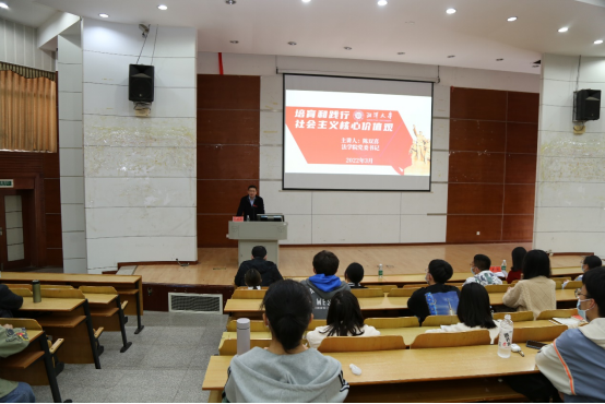 随后,陈双喜书记做了开班讲话,并以“培育和践行社会主义核心价值观”为主题,给培训班学员讲授了第一堂专题党课。(文/陈聪林;指导老师/黄彬)