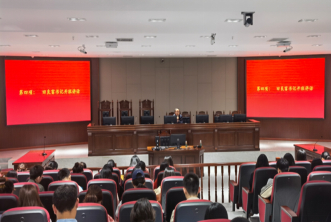 2021年10月19日晚上,yl23455永利官网、知识产权学院、信用风险管理学院分党校在法学楼模拟法庭举行了2021年第2期预备党员培训班开班典礼,知识产权学院直属党支部书记田良富、yl23455永利官网组织员黄彬出席了开班典礼,129名预备党员参加了此次培训。