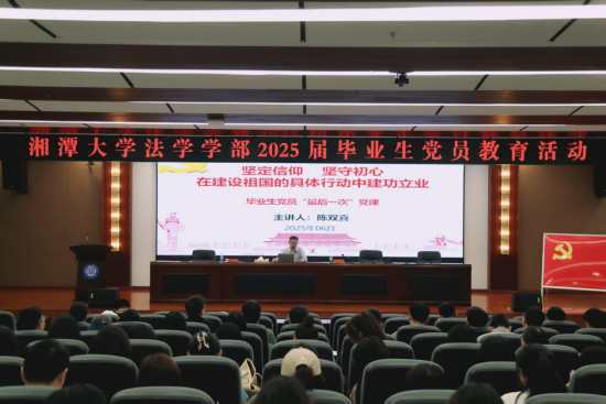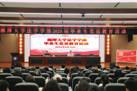 为加强毕业生党员的党性教育,激励全体毕业生党员以良好的精神风貌踏入新的征程,用实际行动和优异的成绩为党旗增光添彩,2025年6月10日上午,我院学部党委在法学楼西附一楼学术报告厅开展毕业生党员专题教育活动。本次活动由我院学部党委副书记黎益君主持,学部党委书记陈双喜、组织员、相关辅导员老师,以及2025届毕业生党员共两百余人参加了本次活动。