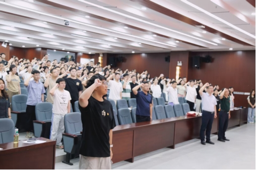 大会在庄严肃穆的国际歌歌声中拉开序幕。我院学部党委书记陈双喜带领全体党员重温入党誓词。面对鲜红的党旗,毕业生党员们庄严举起右手握拳宣誓。临近毕业这一人生重要节点,重温誓词让他们铭记入党初心,坚定为实现民族复兴伟业贡献智慧和力量的决心。