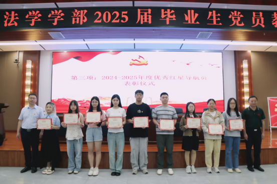 会上对2024 - 2025年度优秀红旗导航员进行了表彰仪式。红星导航员是我院学部党委精心打造的一项特色党建品牌活动,通过严格选派高年级优秀学生党员,与新生班级及寝室结对帮扶,充分发挥高年级学生党员“传帮带”的示范引领作用。多年来,该活动在促进新生养成教育、加强党建带团建等方面成效显著,为学部人才培养和党建工作注入了源源不断的活力。