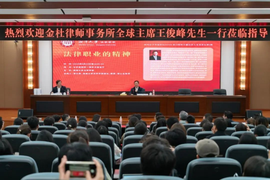 2025年4月25日晚上8:30,我院学部韶风我院名家讲坛暨卓越法律人实务讲坛2025年第18期在法学楼西附一楼学术报告厅举行。金杜律师事务所全球主席王俊峰以“法律职业的精神”为主题为学部师生带来一场精彩的学术讲座。