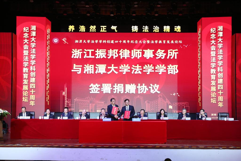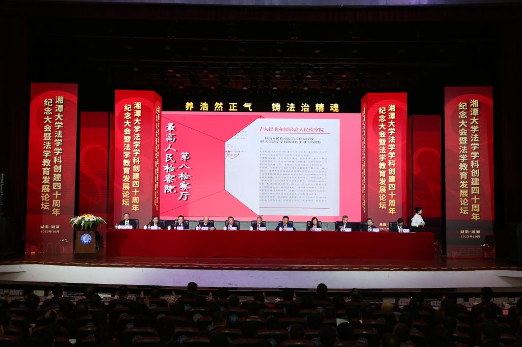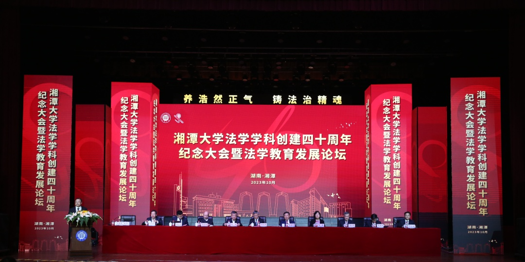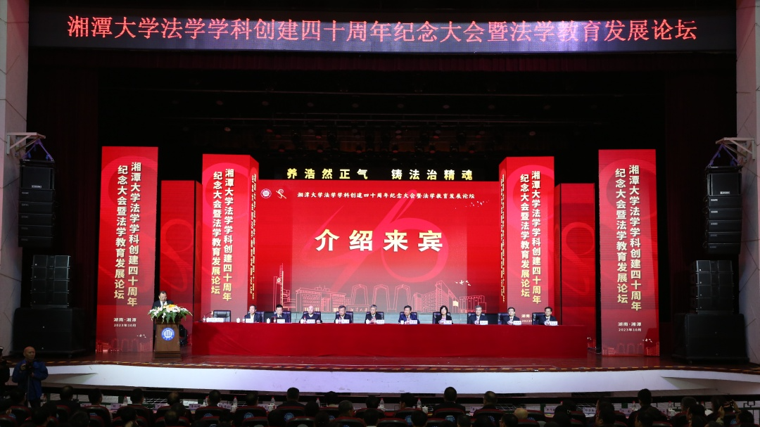 上午9时30分,湘潭大学大礼堂内,气氛热烈而隆重,庄严又温情。湘潭大学学院学科创建四十周年暨法学教育发展论坛在这里举行。八方校友、兄弟院校代表、社会各界同仁与我院学部师生欢聚一堂,纪念湘潭大学学院学科创建40周年,共话新时代中国法学教育的守正与创新。
