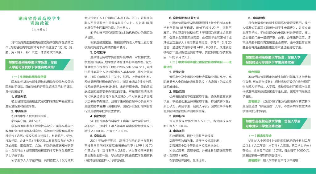 湖南省普通高校学生资助政策宣传手册(2025年)