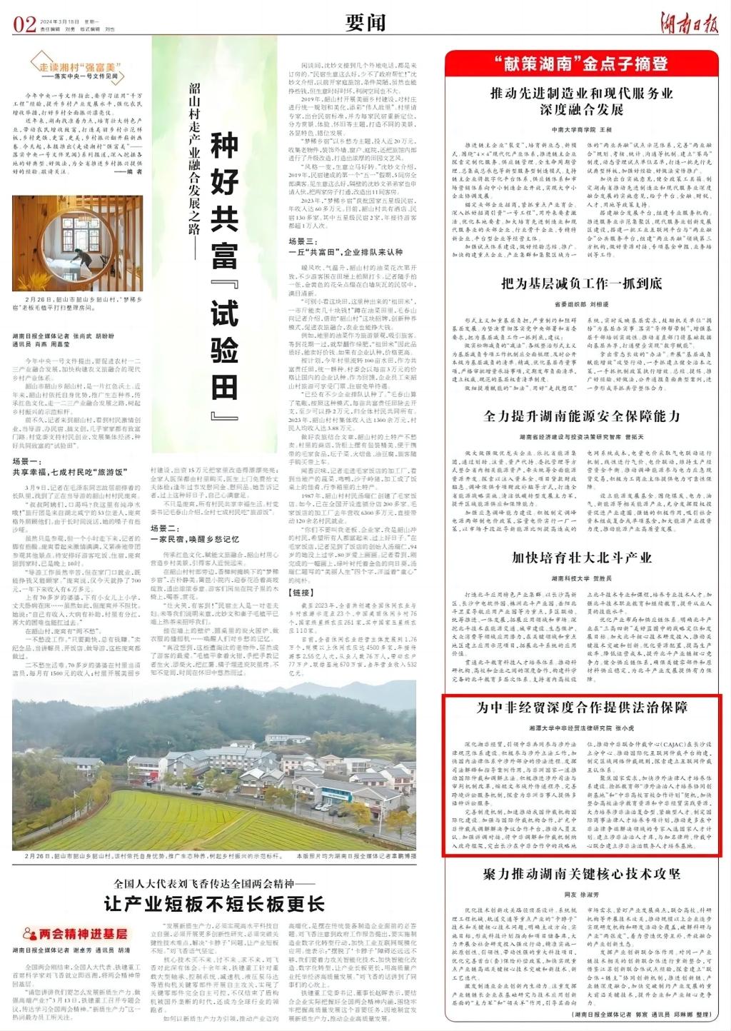 深化湘非经贸,引领中非共同参与涉外法律规范体系建设。积极参与涉外立法工作,加快国内法律体系中涉外部分的修法进程。发挥司法解释和指导案例作用,与非洲国家一道推动国际仲裁和调解立法。积极推进涉外司法与审判机制改革,缩短文书域外传递程序、完善跨境诉讼服务机制,探索为非洲当事人提供多语种诉讼服务。